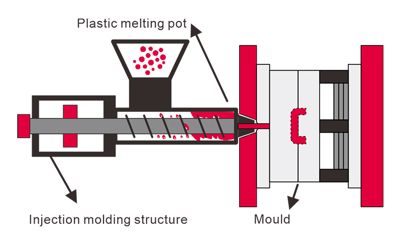 La fusion en plastique est injectée dans la cavité du moule fermé à 70-150 MPa pour remplir le moule.
