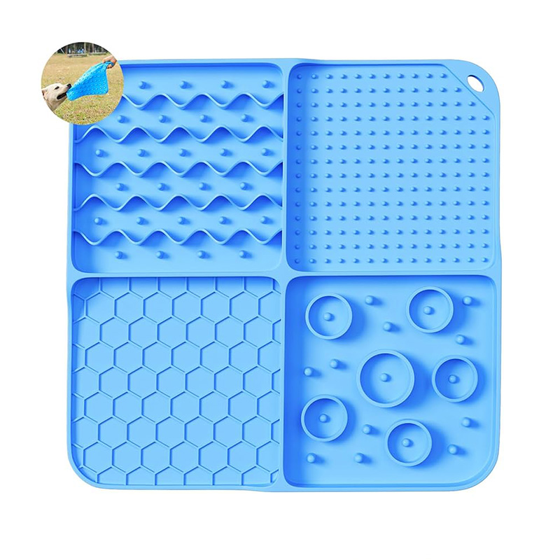 Mattes de léchage en siliconesont fabriqués en silicone liquide de qualité alimentaire. Tout d'abord, le moule est conçu. Ce moule en silicone de précision personnalisé nécessite une division précise du produit en quatre compartiments, ainsi qu'un nid d'abeille et une structure de points surélevés.