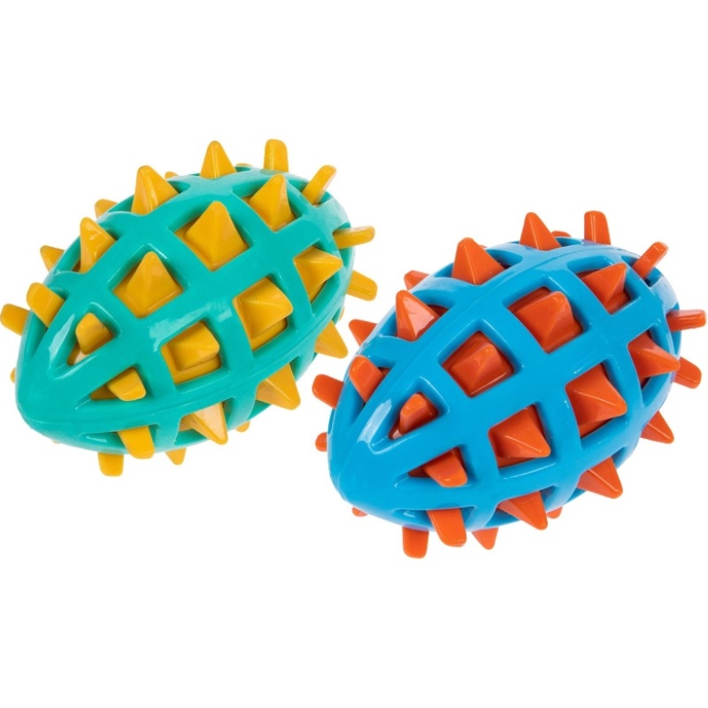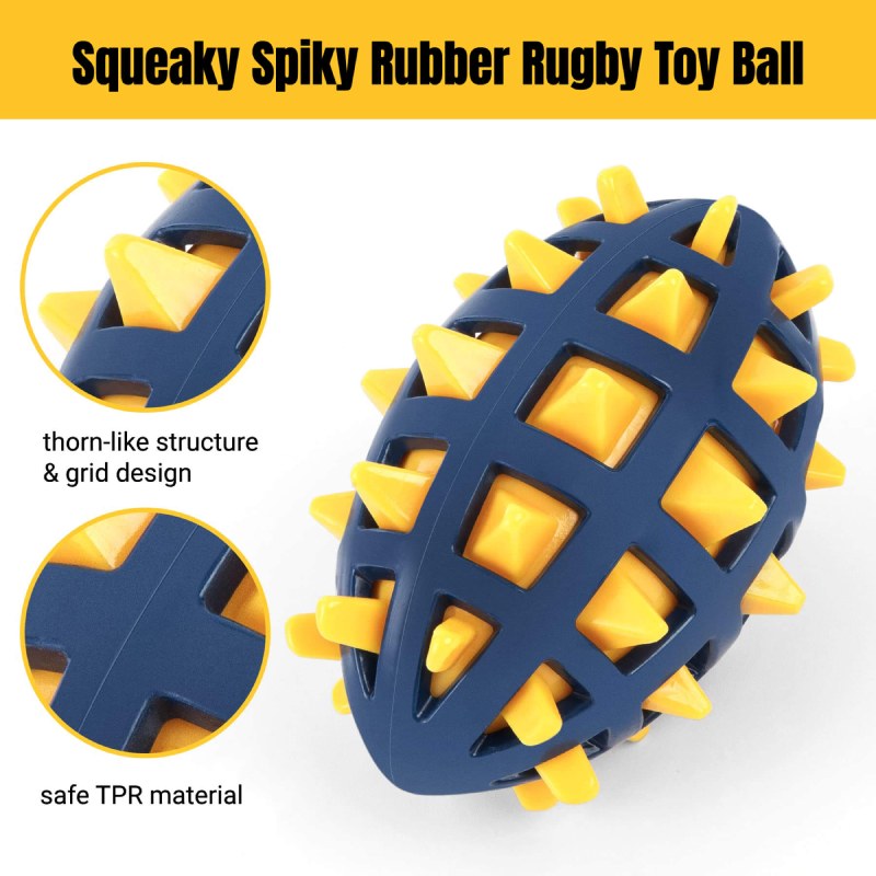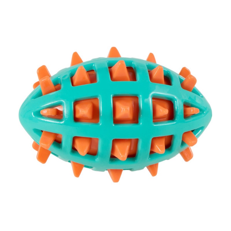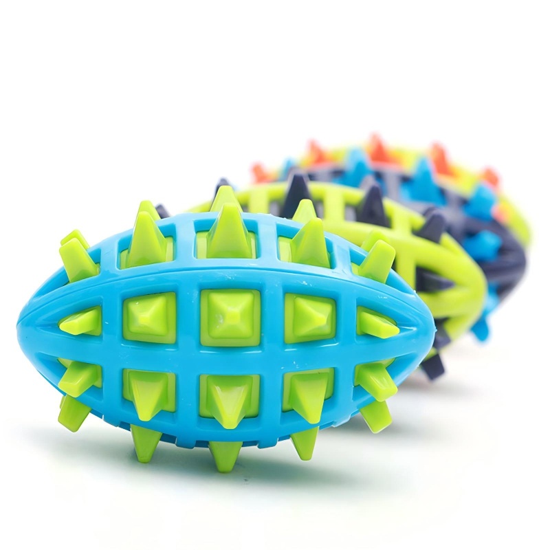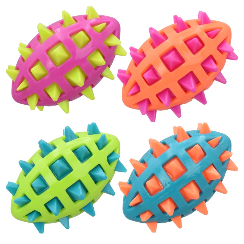 En comparaison, le matériau TPR montre un bon équilibre de coût, d'élasticité et de douceur, et est très adapté comme matériau pourRugby Spiky Rugby Ball.